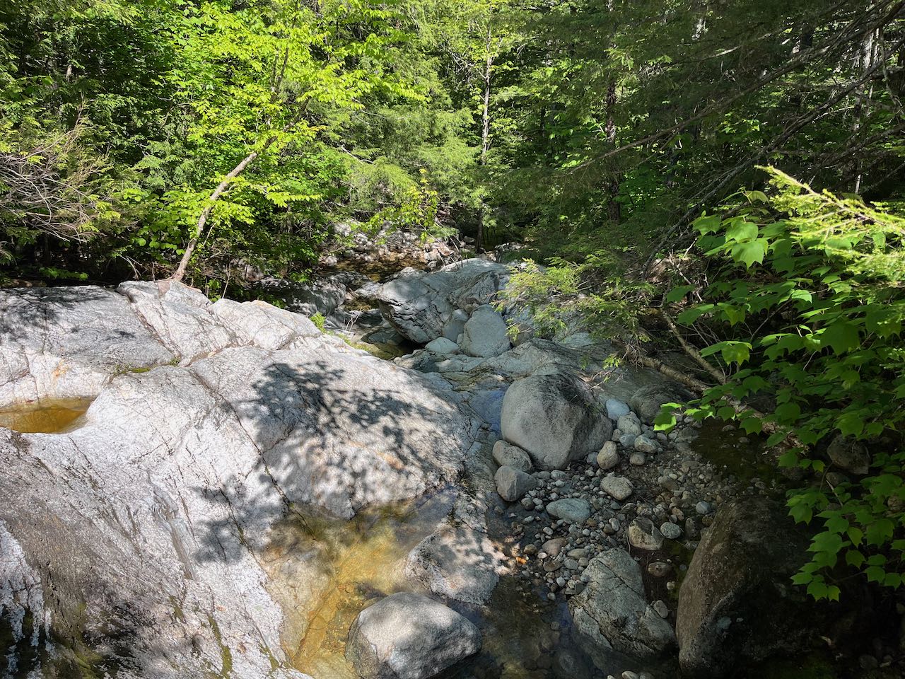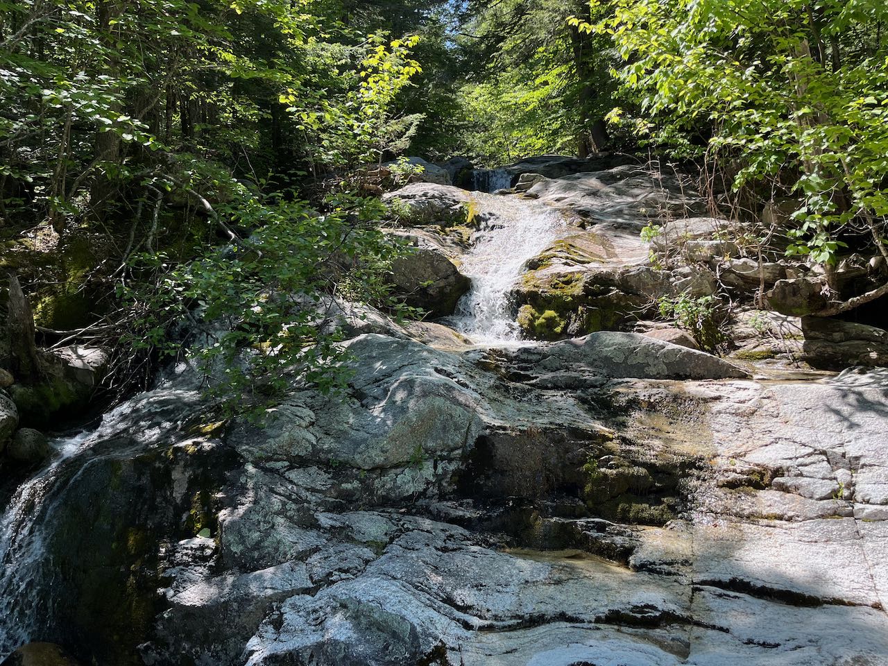 About the Hike: This scenic cascade series is one of the shorter and easier hikes in the Evans Notch area, although the trail sees few visitors. It is not well marked from the road, but once you find it, it is easy to follow and gradual. A long chain of cascades combined with impressive expanses of ledge make it a worthwhile visit and an interesting place to explore.