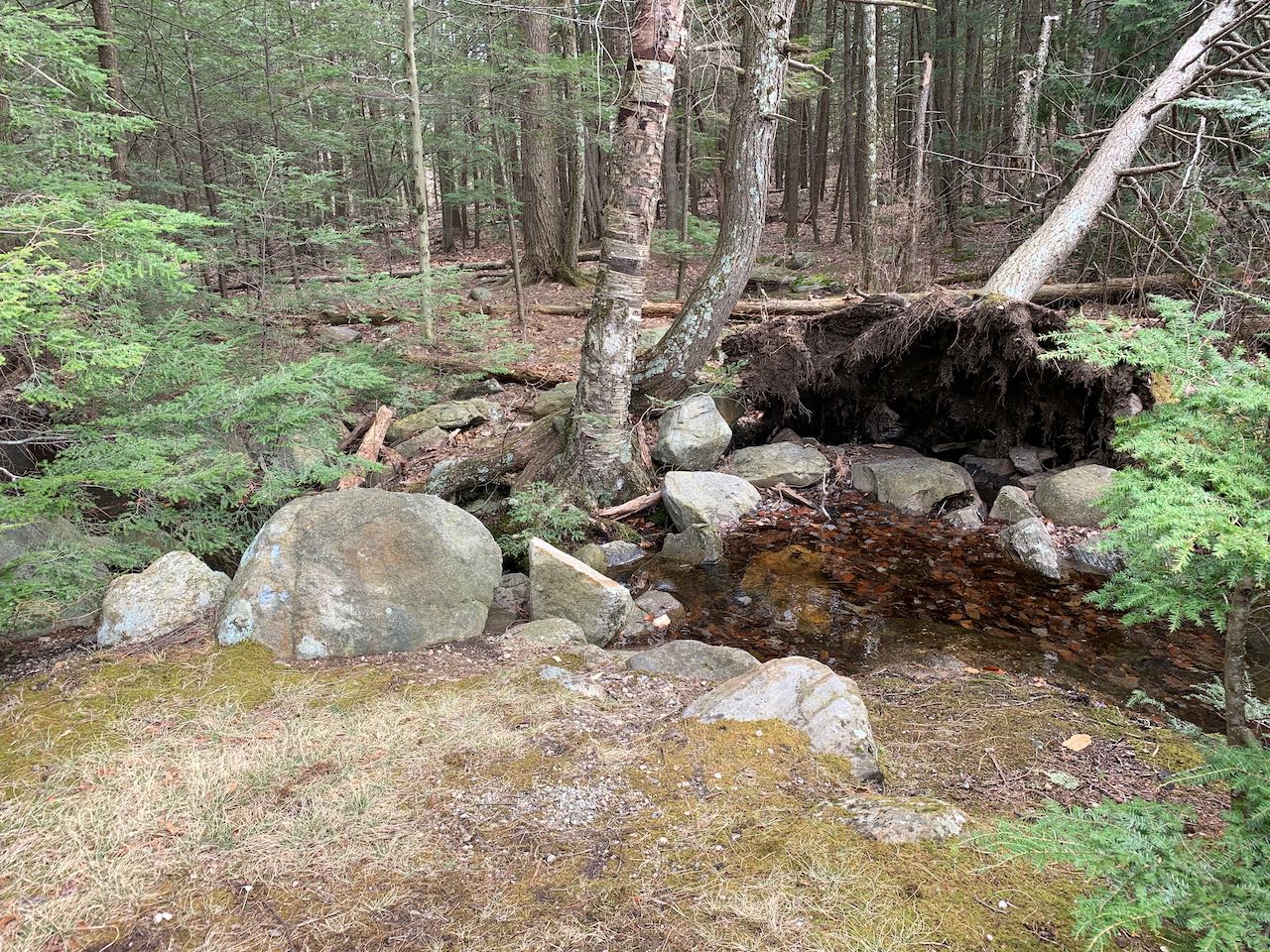About the Hike: It's tough to find a secluded and pristine waterbody in southern New Hampshire, but Weare's Ferrin Pond fits the bill. It has all the characteristics of a scenic mountain tarn you'd find up north - an evergreen-lined shore, a stony bed, and clear, clean water. It's also at an unusually high elevation for this area of the state. A pleasant walk through town conservation land will get you to its south shore, and you can explore all the way around if you have time.