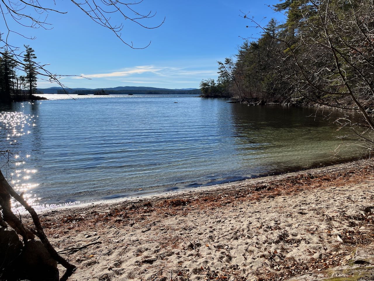 The major waterbodies of New Hampshire's Lakes Region are irregularly shaped, with innumerable projections, coves, and jagged islands. Five Finger Point is the name of one such peninsula which shows off this characteristic of Squam Lake. As its name suggests, the landmass is punctuated with five notable smaller peninsulas protruding from the main one. While most of Squam Lake's shoreline is dotted with lakehouses and strung together with roads, Five Finger Point is covered by conservation land and offers a scenic walking trail around its edge, visiting picturesque rocky outcrops, sandy beaches, and bushy wetlands.