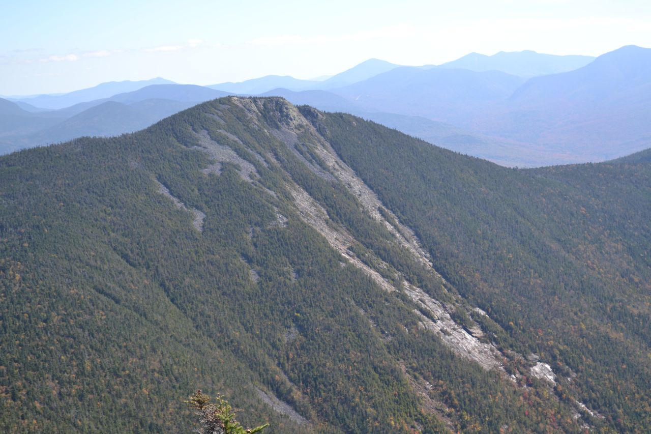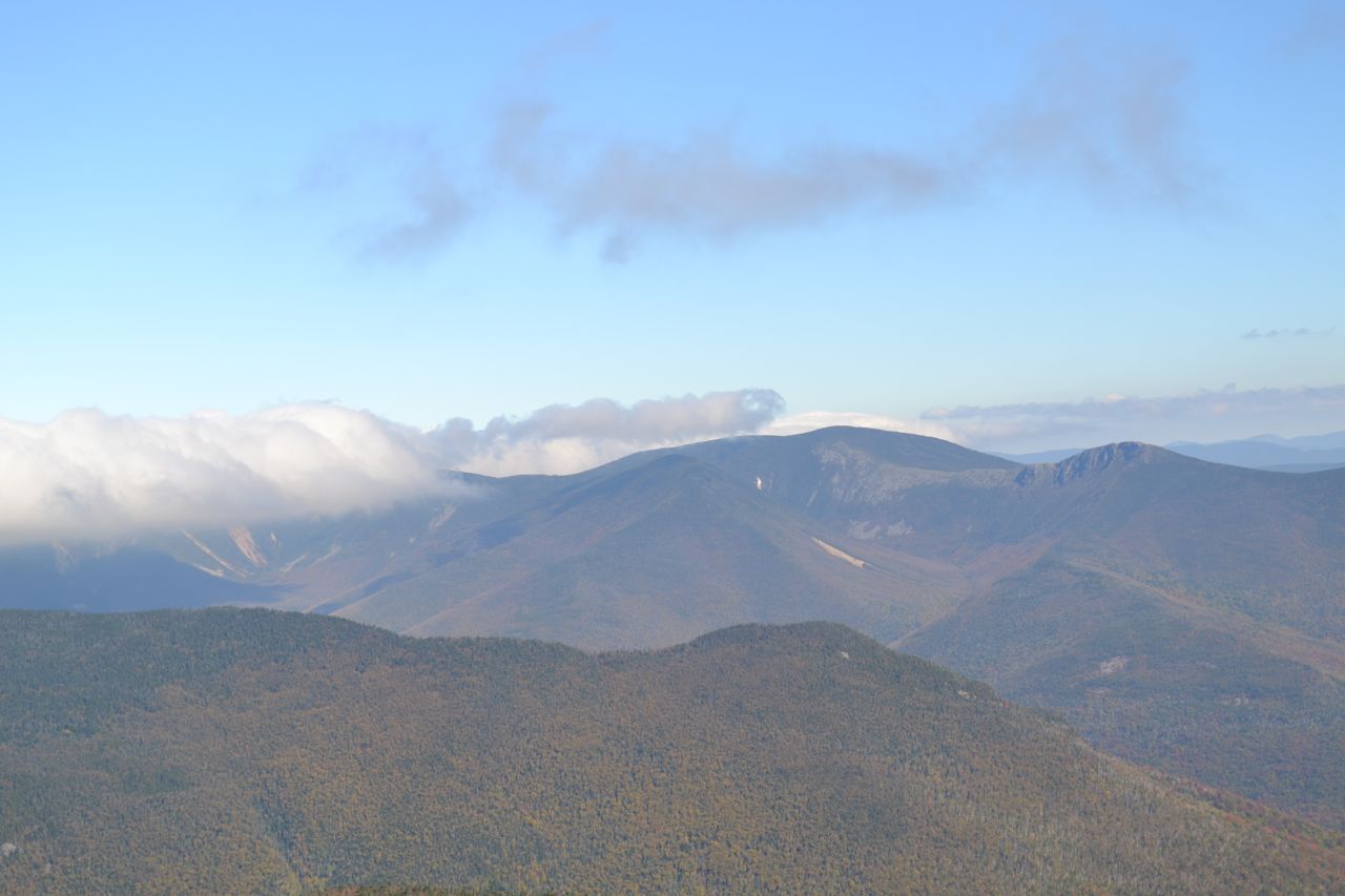 From the summit, the view is best to the south and west. You can see Mt. Moosilauke to the southwest and the Kinsmans across Franconia Notch to the west. Mt. Liberty and the Franconia Ridge rise above you to the north. Mt. Garfield is directly north, over the valley. Owl's Head Mountain and the Twin Range are visible through the trees to the northeast. Mts. Carrigain and Hancock are seen through the trees to the east. To the southeast, you can see Mts. Osceola and Tecumseh over the trees. To the south, the view extends into the distance.