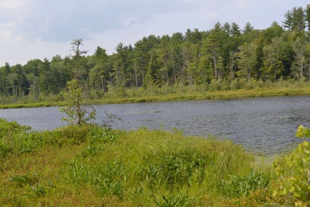About the Hike: Although mostly a walk through the woods with a very short boardwalk, Fox Forest's Mud Pond Bog is a peaceful and worthwhile destination. It starts at the Fox Forest headquarters and follows the ridge trail, which goes on to encircle the entire property. From the parking area, take Ridge Trail to the east side trails (Don't cross the road). Follow it along the edge of a field and bear right where the trail splits into a loop. Continue past two intersections with Mushroom Trail, and after about 0.3 miles from the parking area, keep right where Valley Road leads off to the left, staying on Ridge Trail. The trail descends gradually through the forest, along a brook, and near a swamp for the next 0.4 miles before arriving at Virgin Forest, a stand of hemlock trees over 200 years old that have never been cut. Here, bear right and leave the Ridge Trail, following Mud Pond Trail past a Fox boundary corner and deeper into the forest. The trail climbs gently, reaching an old dirt road in another 0.3 miles. Cross the road and continue on Mud Pond Trail and you will soon arrive at the Mud Pond Bog boardwalk. Although the boardwalk extends only about 100 feet into the bog, it is enough to provide a quiet waterside viewpoint over the pond in the center. There is also a small wildlife blind for birdwatchers.