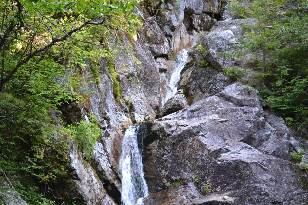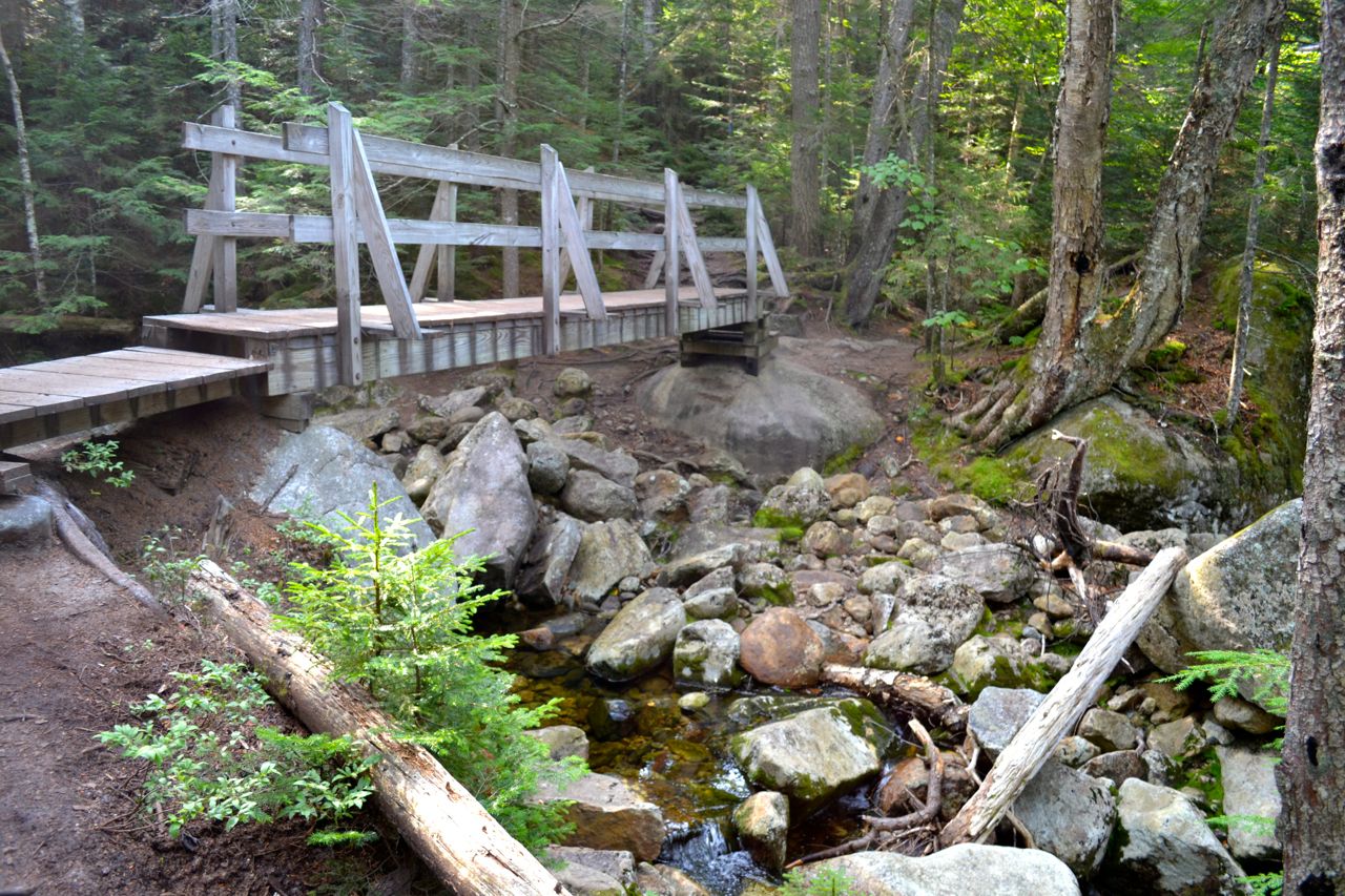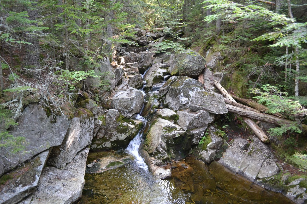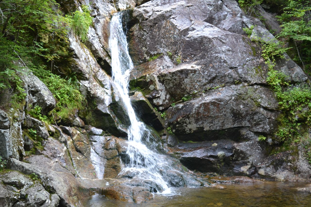 About the Hike: Gibbs Falls is a small cascade a short distance up the Crawford Path, which, originally created in 1819, is the oldest maintained hiking trail in the country. To visit it requires a walk of little more than half a mile on moderately steep terrain. Start hiking on Crawford Connector, which leaves at the far end of the parking area, crossing Mt. Clinton Road in 0.1 miles. It begins to ascend on the other side, climbing to a wooden bridge over Gibbs Brook, the water source of the falls, in another 0.3 miles. It now joins the brook and climbs more steeply alongside it for 0.2 miles, where a spur leading down to Gibbs Falls appears. Turn left and walk a short distance to the shore of the shallow pool below Gibbs Falls, a narrow, angled waterfall which always flows through a well-defined rock path.