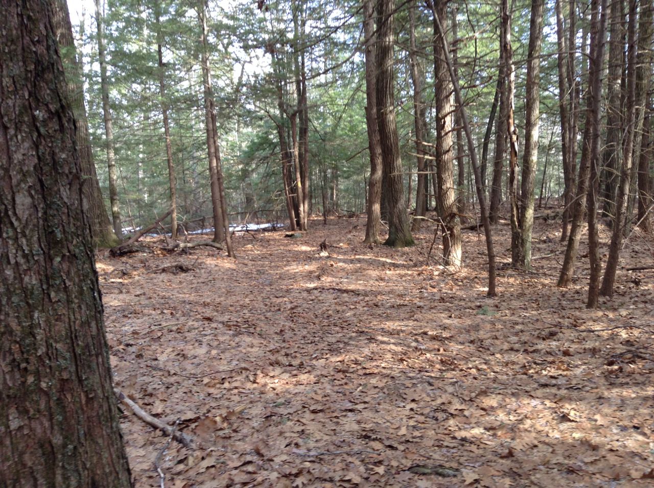 Driving Directions: Trailhead and parking area are on Heald Road in Wilton, NH. To get there, take King Brook Road from the west side of Rt. 31, 2.4 miles south of Rt. 101 and 3.3 miles north of Rt. 31's northern junction with Rt. 123. Drive 0.8 miles on King Brook Road, then turn left onto Kimball Hill Road. In less than 0.1 miles, turn right onto Heald Road. Warning: Heald Road may be rough in mud season. Drive 0.4 miles, passing a parking area with a Forest Society kiosk, and park at a small pull-off across from a gate. Click here for a Google map.