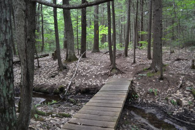 Driving Directions: Trailhead and parking area are on Rt. 202 in Antrim, NH. The parking area is 0.9 miles north of where the combined Rt. 31/Rt. 202 splits in the center of Antrim. There are three trailheads with signs for the McCabe Forest. Park at the northernmost and largest parking area, located next to a small garage. For trail directions, refer to the trail map. Click here for a Google map.