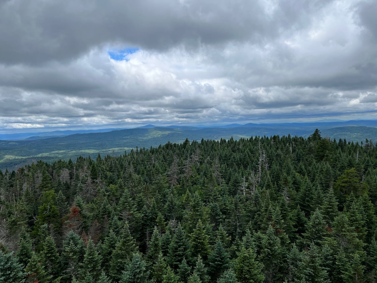 About the Hike: Monadnock is a name for mountains that stand completely alone. The monadnock everyone knows is the Mt. Monadnock in southwestern New Hampshire, but the second Monadnock Mountain is located in the Northern Kingdom of Vermont. Despite being across the state line, it has an association with Great North Woods hiking because of its looming presence over the town of Colebrook. Its nicely refurbished fire tower provides a stunning panorama of a region with not many maintained hiking trails. The hike to the top utilizes the old jeep road to the fire tower, as many tower trails do. This makes for a steady grind of a hike to surmount the respectable elevation difference from the Connecticut River to the summit. Difficulties with trailhead location has kept it from major notoriety, but it is easy enough to find if you know where to go.