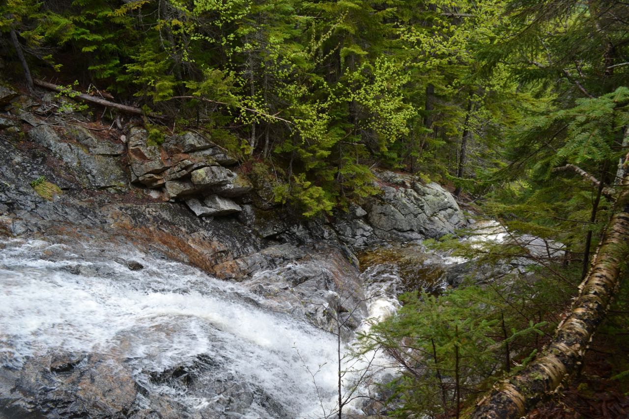 Driving Directions: Trailhead and parking area are on Rt. 302 in Hart's Location, NH (cascades are in Livermore), 17.7 miles south of Rt. 3 and 11.3 miles west of Rt. 16. Look for a small pull-off on the west side of the road with a trail sign, across from a clearing by the railroad tracks. If travelling eastbound, it will be on your right 0.9 miles after passing the entrance to the Notchland Inn. Click here for a Google map.