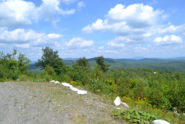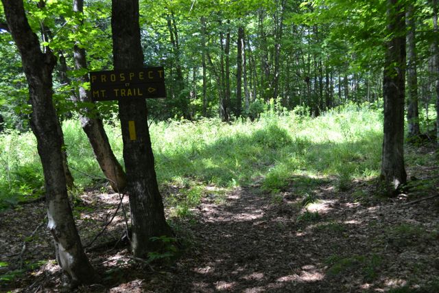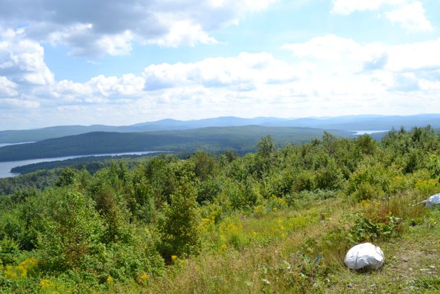 About the Hike: Prospect Mountain is a little-known hiking destination traversed by the 165-mile Cohos Trail. Although unattractive itself, a clearing at the top yields a wonderful lake and mountain vista. From the small parking spot, walk back down the road to the fork, and proceed up the other fork to a hidden trail sign on the right side. This trail (Boundary Line Trail) climbs through the woods parallel to the driveway. In 0.1 miles, the trail turns left, away from a house at the top of the driveway, and travels a short distance to an ATV trail. Turn right as the trail joins the ATV trail. The climb is moderate and just over half a mile long, with switchbacks on the upper part. At the summit, follow an unmarked spur on the right (marked with three yellow dots just before a sign for the Cohos Trail) through a patch of trees to a gravel lot. The clearing has a 180-degree view to the east, overlooking the First Connecticut Lake. Directly across the lake is Magalloway Mountain, the most easily recognizable peak in the area. To the northeast of Magalloway are Diamond Ridge and Stub Hill, and to the north are the Boundary Mountains. In the other direction, the view extends southwest to Vermont.