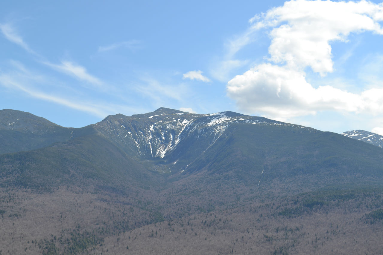 From your starting point, walk a little over a tenth of a mile downhill on a shortcut called Grassy Lane. Turn right as you tee into Pasture Path, which parallels Randolph Hill Road. Set off in a narrow corridor through level forest, passing over an occasional bog bridge or two. Stroll along with little elevation change for just over a half mile to a trail junction. Take a left to stay on Pasture Path, following an old road as Four Soldiers Path continues ahead, then in 200 feet, turn right, again staying on Pasture Path. The trail soon crosses Carlton Brook, followed by two of its tributaries, in the next quarter mile. The brooks drain the south side of the Crescent Ridge. In higher water, it can be harder to make use of the stepping stones, so use caution. At the last brook, the trail crosses Jimtown logging road at an angle and sneaks by the right side of a clearing where it ends. The climb begins in earnest now, as the trail ascends moderately through open hardwoods. In 0.4 miles, Ledge Trail merges from the left; continue up for 0.2 miles over a final bout of the steepest terrain, where the trail becomes rockier through dark evergreens. Reaching a trail junction above the ledge where the path ahead becomes Crescent Ridge Trail, follow a path a few steps downhill to the left to reach the top of the outlook, where a sign on a lone tree identifies your location as Lookout Ledge. Here you are greeted with a grand sweep of a vista across the Israel River valley, bisected by Rt. 2. Mt. Adams looms ahead, flanked by Mt. Madison on its left and Mt. Jefferson on its right. A closer look reveals the scalloped talus slopes of the headwall and the piles at the base. Durand Lake shimmers beneath you to the left. The low, cliffy rise of Pine Mountain intrudes into the valley further to the left, with Middle Carter and the three Moriahs as a backdrop. Furthest over to the left, the view stretches into Maine past the southern reaches of the Mahoosuc Range.