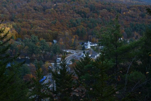 About the Hike: Mt. Sunapee, home to the Mount Sunapee Ski Area, also has a network of hiking trails on the side not occupied by ski trails. The most popular destination is White Ledges (see Mt. Sunapee), but a lesser known place with a nice view is the Newbury Trail outlook near Sunapee's South Peak, which has a good view of Lake Sunapee. Along the way, you can stop at Eagle's Nest, a smaller overlook which provides a closer view of the lake. The Newbury Trail to Eagle's Nest is easy, winding through the forest and climbing at a gradual rate. In 0.4 miles, look for a small cairn on the right. This marks a short spur which leads 0.2 miles out to this rocky viewpoint. Although somewhat restricted by trees, it provides a close-up view of Lake Sunapee, Newbury Harbor, and the houses on the hillside behind the lake.