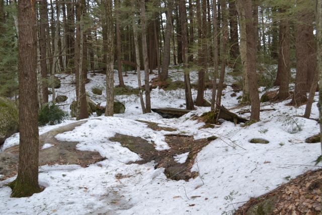 Driving Directions: Trailhead and parking area are on Savage Road in Milford, NH. To get there, take Phelan Road off Rt. 101, 0.2 miles south of the western junction of Rt. 101 and Rt. 101A. Follow Phelan Road 0.2 miles until it ends at Savage Road, and turn left. Follow Savage Road 0.8 miles to the parking area on the left. Click here for a Google map.