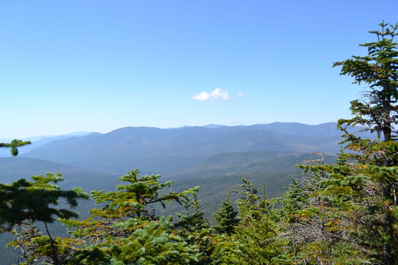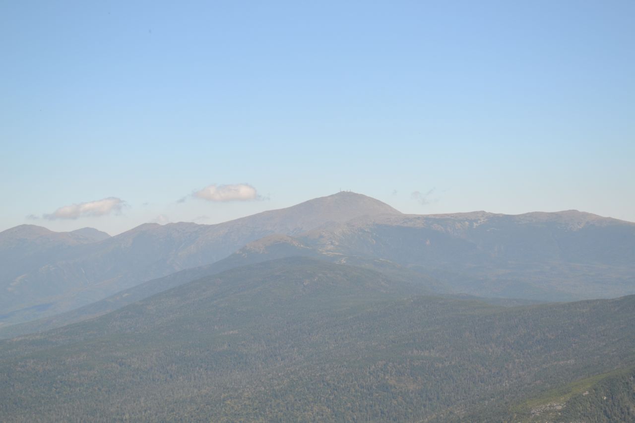 After enjoying the spectacular views here, continue over the summit and descend a short distance to a less open view over the Pemigewasset Wilderness. Mt. Carrigain and Mt. Hancock are to the south, while the magnificent Bonds rise above the flat land in the eastern wilderness. The lofty Franconia Ridge looms above Mt. Guyot. Zealand Mountain is seen below the Twins off to the north.