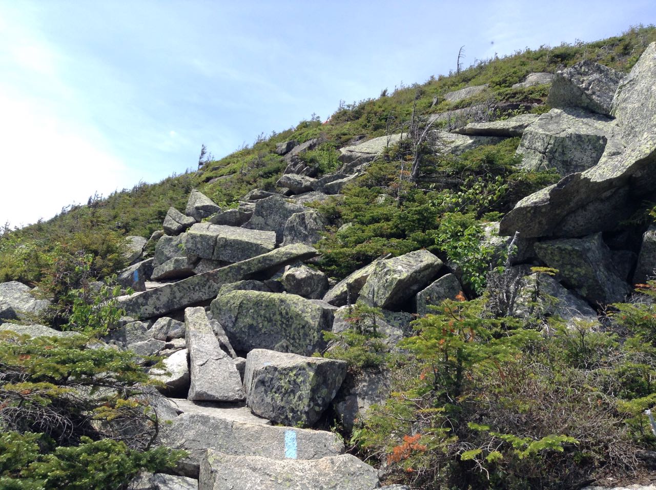 About the Hike: Cannon Mountain is widely known for its tourist attraction known as the Cannon Mountain Aerial Tramway, one of the most popular features of Franconia Notch State Park. In the summer, it carries tourists to its summit station, where gravel paths lead to the observation tower on the true summit, which provides spectacular 360-degree views. In the winter, the tramway transports loads of skiers to the top of its state-managed ski area. For hikers, there are several trail approaches to choose from. The most popular is the northernmost section of the Kinsman Ridge Trail, one of the shortest hikes to a 4000-footer. Although brief by comparison, the hike to Cannon Mountain is far from easy, involving a constantly rough and rocky climb through a very steep ski trail. On the way, the Cannon Cliffs viewpoint yields a wonderful view across the notch to the Franconia Range.
