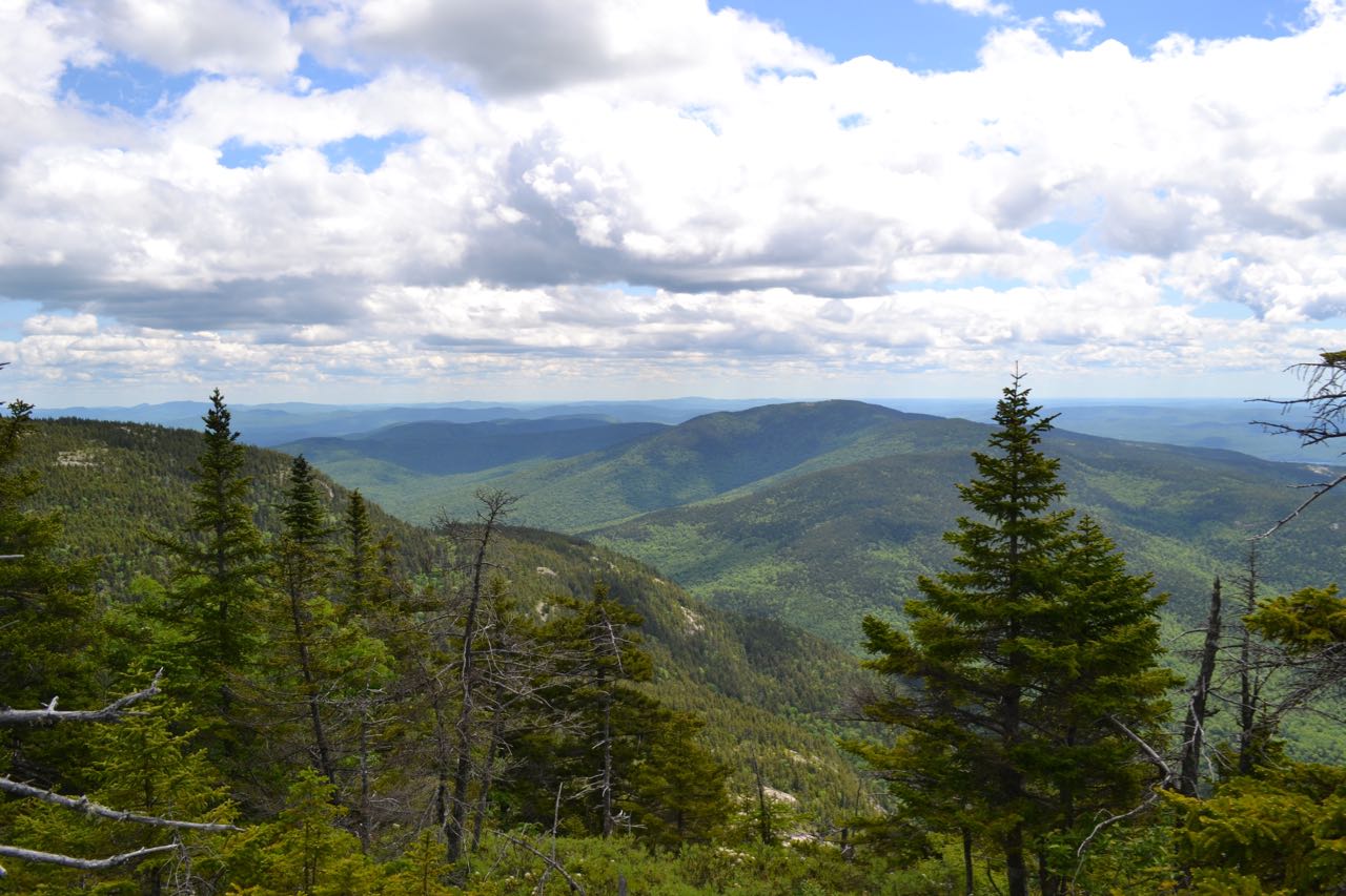 Driving Directions: Trailhead and parking area are on Maine Route 113 in Batchelder's Grant, ME. (Seasonal road - check status on TrailsNH to verify gate status). Note: because of the confusion which can arise from two different Rt. 113's (NH 113 and ME 113) being so close to each other, we have given directions for this particular hike from Conway. From the junction of NH 16 and NH 113 in Conway, drive east on NH 113. In 2.0 miles, Rt. 302 joins from the left; continue straight on Rt. 302/113. In 4.7 miles, NH 113 ends, and the road, now only Rt. 302, crosses the Maine border. In 1.1 miles from the border (5.8 miles from jct. 302/113), turn left onto ME 113 (River Street). Drive 1.2 miles (crossing back into NH), then turn right to stay on ME 113, now East Conway Road. In another mile, turn right again to stay on ME 113, now called West Fryeburg Road, crossing back into Maine. In 4.4 miles, turn right one more time to stay on ME 113 where NH 113B continues ahead. In another 3.1 miles, NH 113B enters from the left, the name of the road changes to Main Road, and it crosses the state line back into NH. Continue 7.9 miles, passing several other trailheads and crossing the state line back into Maine. The road narrows and climbs steeply to its highest point on the east wall of the notch, where there is a scenic overlook. The parking area is located on the left after this, when the road descends to the actual notch. Click here for a Google map.