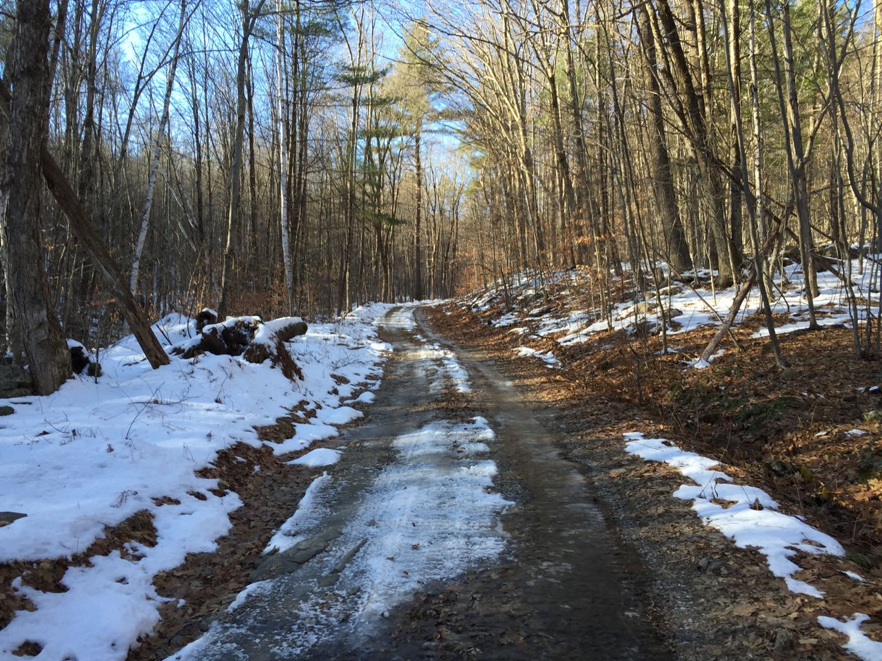 Driving Directions: Trailhead is on Hurricane Road in Keene, NH (summit is in Westmoreland). To get there, turn south onto South Village Road off Rt. 12, 3.6 miles east of Rt. 63 and 4.6 miles west of Rt. 12A. Drive 0.6 miles, then take a left onto Hurricane Road and travel 1.6 miles. At a left bend, look for a gated road descending at a sharp angle on the right, and park on the roadside. Click here for a Google map.