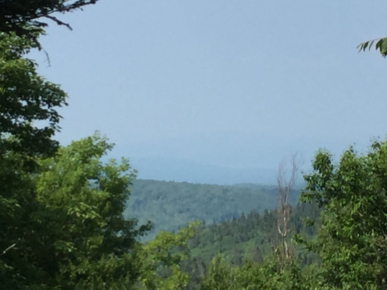 The hike starts on the shore of Little Diamond Pond, in Coleman State Park. This picturesque waterbody is one of the nicest features of the hike. From the parking area on the lakeshore, walk back down the park road the way you drove in toward the main camping area of the park. Cross the lawn and go all the way to the southern edge of the lawn and follow a dirt path past several cabins. Look for a Cohos Trail sign on your right and turn into the woods to follow it. It winds through the woods, and in just over 0.1 miles, reaches a snowmobile trail. Bear left and follow it. It leads uphill gradually for a quarter mile to a large clearing. The trail crosses the clearing and descends to cross a snowmobile bridge over a brook after another quarter mile. It then begins a long, steady ascent to the col between Sugar Hill and nearby Tumble Dick Mountain. In the first 0.3 miles, it passes through an area of logging patch cuts on both sides of the trail, then swings right. It continues uphill in the vicintity of more clearings, becoming more steep. It climbs for the next 0.6 miles, swinging onto the side of Tumble Dick and making a long 180-degree turn back toward Sugar Hill. The trail runs flat through pretty forest, then turns left into the woods at a sign in 0.1 miles. You will want to continue straight on the snowmobile trail, leaving the Cohos Trail. A sign indicates this is a "spur to scenic view". In 0.1 miles, reach the col between the two peaks, where the official spur trail leads off to the left to a tiny opening in the trees where an equally tiny view can be seen over tall grasses. Continue on the snowmobile trail a short distance to a fork and bear right onto another snowmobile trail, climbing again. The trail ascends moderately up the side of Sugar Hill for 0.35 miles, with slight views available behind you as you walk. It then swings right and leads across the hill for 0.15 miles to a point just below the summit, where it continues across and descends the other side of the hill. You can return the way you came.