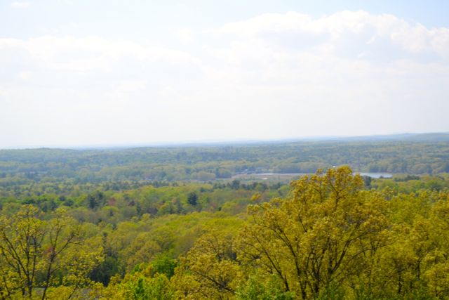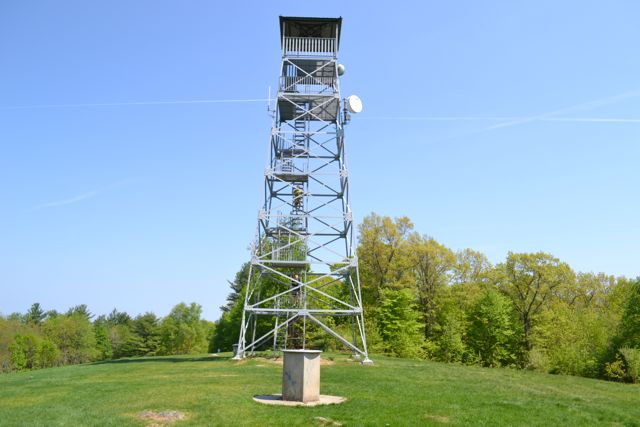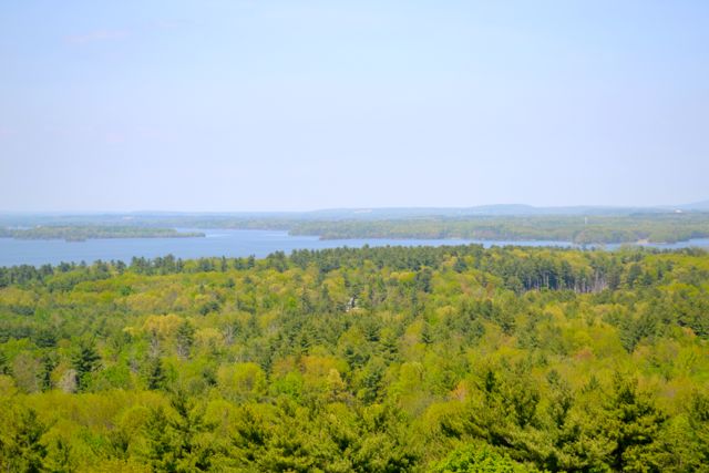 It's hard to find any scenic vistas as close to the sea as Stratham Hill. Located in a cluster of small, steep-sided hills, it has a beautiful view from the converted fire tower on its summit. The tower is accessed by a very short trail from Stratham Hill Park. Start hiking on the Tuck Trail, which begins on the left side of the parking areas, behind a kiosk and two rocks. Follow this for 0.1 miles until it ends at Lincoln Trail, a much wider path. Turn left and continue another 0.1 miles to the grassy clearing at the top of the hill. There are picnic tables and an old viewfinder in the clearing. The cab walls on the fire tower have been removed and replaced with railings to make viewing easier. The tower is tall enough to see over the trees to the east, north, and west. Great Bay is close by to the northeast, and the ocean is in the distance to the east. To the north, the Pawtuckaway Mountains are visible.