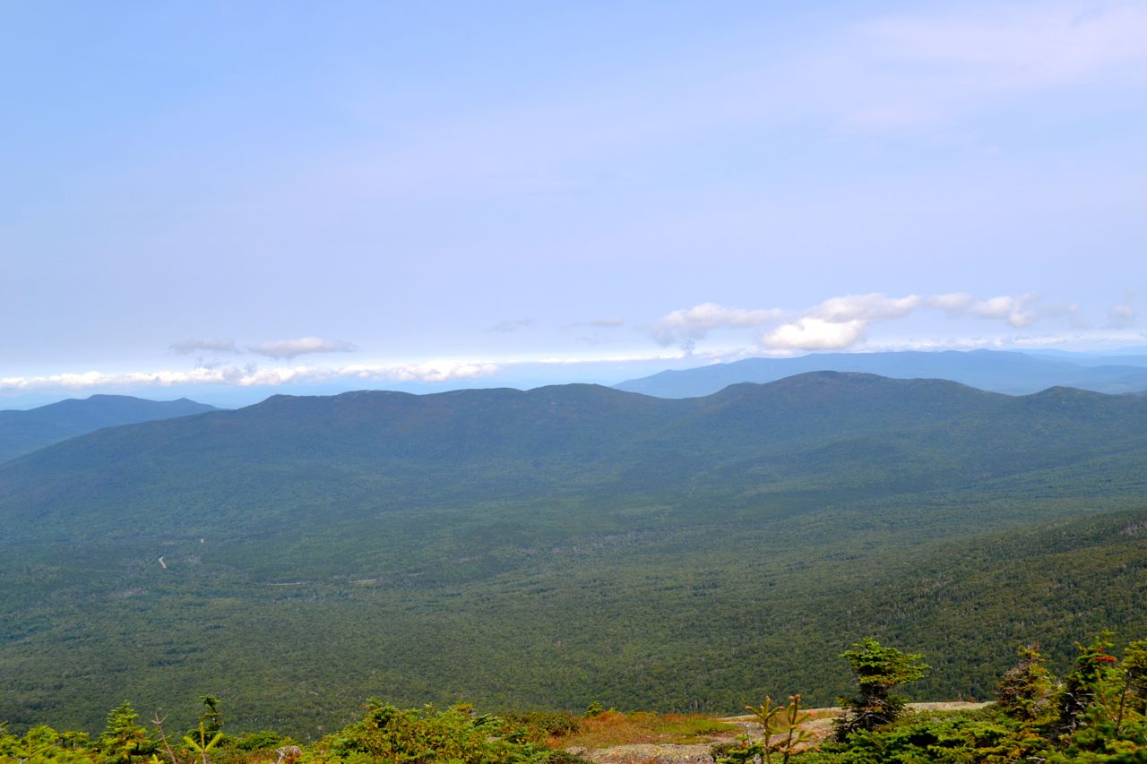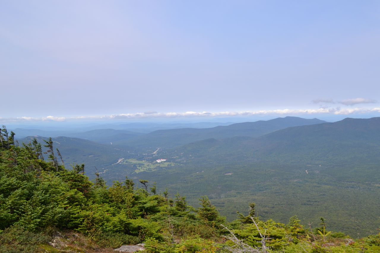 Views are spectacular. The Mt. Washington Resort is seen in the valley below to the west, next to the Rosebrook Range with its ski trails. Next over, and closer, is the Cherry-Dartmouth Range. Off in the distance are the Pliny and Pilot Ranges. In the center of the view are the rest of the Presidentials, including Jefferson and Clay, to the left of Washington, and Eisenhower, Franklin, and Monroe, in front of it. Boott Spur and the Montalban Ridge are to the right of Washington.