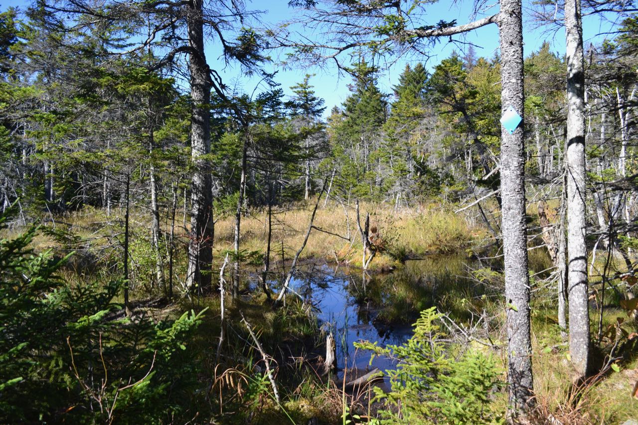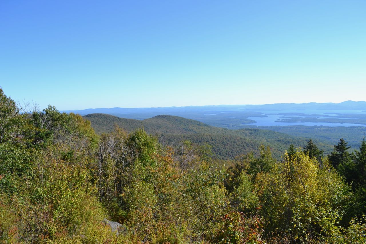 After 0.7 miles, the trail reaches the highest ledge, where there is a 180 degree view encompassing all of Lake Winnipesaukee. The centerpiece of the view is the Belknap Range. There is also a good look over the valley to the east at Mt. Shaw. While this ledge does provide the best view on the mountain, more views await at the summit. To get to the summit, continue on the trail as it climbs gradually first through a conifer forest, then through a grassy area. At a fork, bear right and continue a short distance to the summit, marked with a LRCT sign. Here, you will find a standing directional view north to the Sandwich Range. Continue straight from the summit on High Ridge Trail, a wide, grassy old carriage road. The trail descends gently by long switchbacks to the col with Faraway Mountain in 0.3 miles, then rises up the gradual ridge, with a few more occasional switchbacks. After half a mile, the road swings right and runs flat for 0.15 miles, crossing a bridge over Shannon Brook, then making a switchback up to a wetland where the brook begins in another 0.1 miles. In 0.2 miles, look for an old gated woods road on the left. If you are working on the Ossipee 10 list, you may want to follow this road for 0.4 miles up to the cell tower at the summit of Faraway Mountain (extra distance included in trip mileage). The High Ridge Trail continues 0.3 miles slightly downhill around the south slope of the mountain, reaching a clearing with beautiful views over Lake Winnipesaukee. The trail curves around to the north and makes a hairpin turn in 0.45 miles back to the south. Continue downhill for another easy half-mile to the junction with Faraway Mountain Trail on the right. Turn right and descend on this trail, another old carriage road with excessively long switchbacks. It makes seven switchbacks over the next 0.6 miles, runs across the hillside to the southeast for a half mile, makes five more switchbacks over 0.35 miles, then descends a quarter mile to a T-junction. Turn right onto Cold Spring Trail. The tedious descent continues as Cold Spring Trail makes four extremely long switchbacks over 1.1 miles. Near the bottom of the trail, pass Faraway Mountain Connecter on the left and continue 0.1 miles out to the road on which you started your hike. Bear left and follow the road downhill for 0.6 miles back to the trailhead.