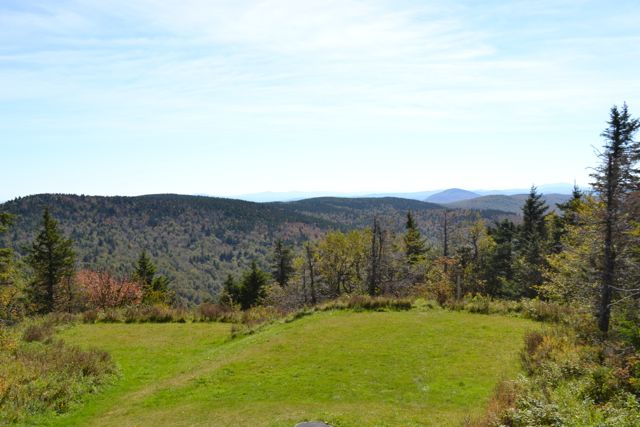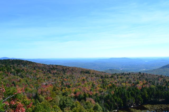 Continue on the flat, winding Solitude Trail as it leads 0.8 miles across the ridge. The trail ends at a ski trail, so you must walk a short distance up the ski trail to get to the summit. The summit has many directional viewpoints to the north from the ski trails. The main feature of the view is Lake Sunapee and its surrounding towns. You can also obtain a view from the deck around the ski lodge at the summit.