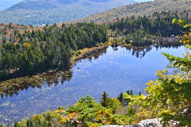 About the Hike: Mt. Sunapee, home to the Mt. Sunapee Ski Area, also has a network of hiking trails on the side not occupied by ski trails. A popular place to hike is White Ledges, which overlooks Lake Solitude. From there, you can continue to the summit, where views are found from the ski trails. For a shorter hike on Mt. Sunapee, see Mt. Sunapee South Peak. This hike starts on the Andrew Brook Trail, which follows Andrew Brook to Lake Solitude. The trail starts out fairly level, crossing Andrew Brook two times in the first, and gradually becomes steeper and rockier as it ascends. In another half mile, it again crosses Andrew Brook, and makes a final crossing 0.4 miles after that. 0.6 miles after the last crossing, the trail reaches Lake Solitude. Lake Solitude is a small pond set in a plateau under the beautiful backdrop of White Ledges. Follow the trail as it heads by the north end of the pond and to a trail junction. Turn right onto the Monadnock-Sunapee Greenway/Solitude Trail, climb steeply, and in another 0.1 miles, turn left to stay on the trail where Newbury Trail turns right. Just past this, look for a large rock clearing on the left and walk out to the White Ledges viewpoint. The cliffs, almost the same height as the summit, have a beautiful view to the east and over Lake Solitude. Their view is just as nice as the view from the top, so you'll want to spend some time here.