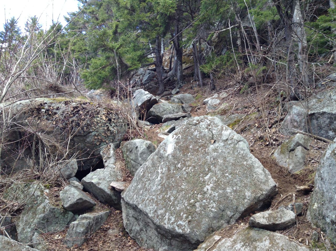 About the Hike: Rand Mountain is located in the central Belknap Range. It has a very limited view and will likely be visited only by those who are trying to achieve the Belknap Range Hiker patch. It is best summited on a trip to Mts. Mack and Klem. A description of the side trip to Rand Mountain is provided here. Follow the directions for that hike to the trail junction near the summit of Mt. Klem. Turn right onto Dave Roberts Quarry Trail. The trail descends over rock and soon begins to drop rapidly, passing through a stone wall. After crossing a narrow col, the trail starts to ascend even more steeply. A short scramble brings you to several switchbacks along a precarious, rocky path. The trail then drops slightly and swings around the mountainside to a limited viewpoint to the south. A short walk brings you up to the viewless summit, marked with a wooden sign. The total distance for the side trip from Mt. Klem to Rand Mountain is 1.2 miles out-and-back.