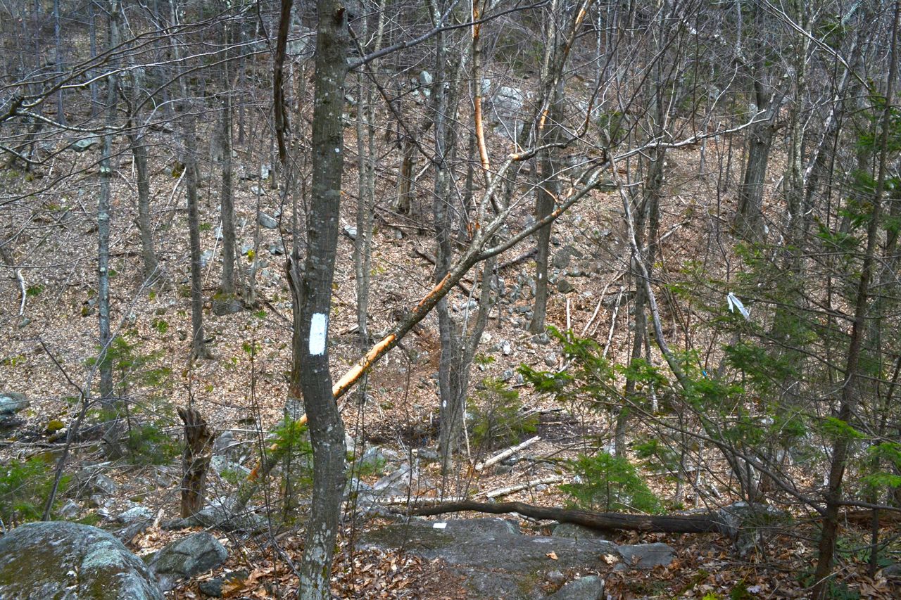 Driving Directions: Trailhead and parking area are off Wood Road in Gilford, NH. To get there, take Bickford Road from Rt. 11A, 4.4 miles southeast of Rt. 11B and 2.7 miles west of Rt. 11. Heading east, Bickford road is the first right after the Gunstock Mountain Ski Area entrance. Drive 0.2 miles down Bickford Road, then turn left onto Wood Road. Just a short distance up the road, turn left into a parking area with spaces for five cars. Click here for a Google map.