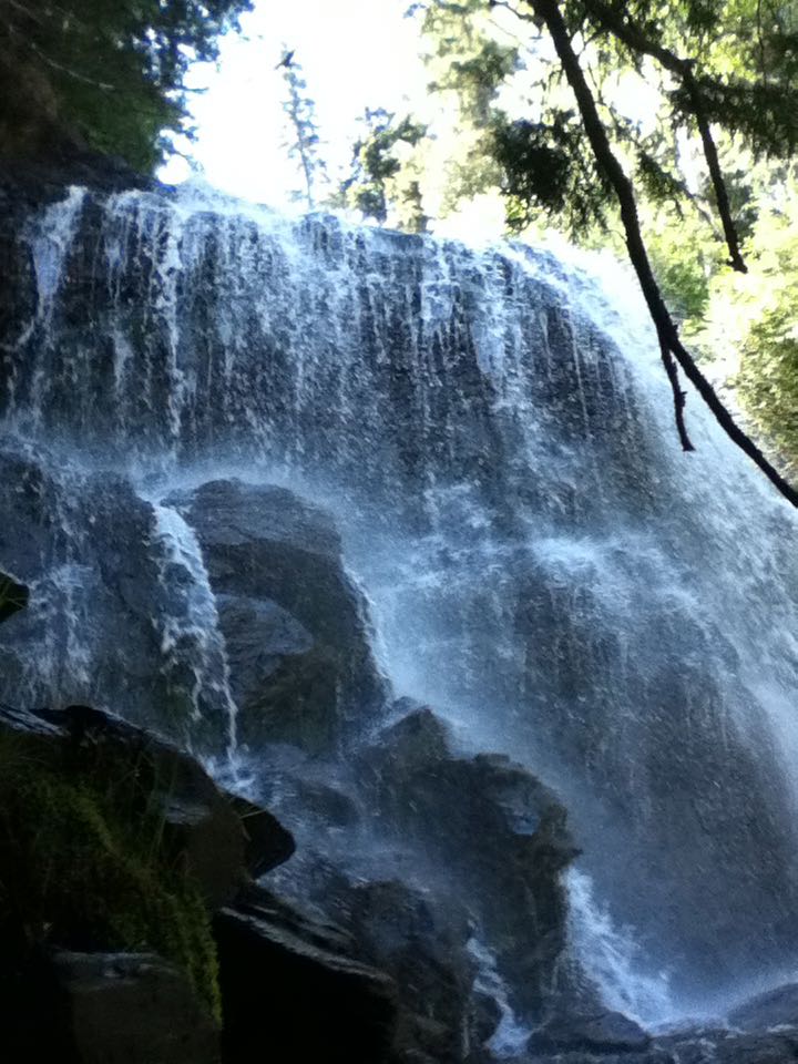 No scenic wayside marks this pretty cascade; no tourist stop, not so much as a sign alerts passers-by to its presence, despite being right on the side of a