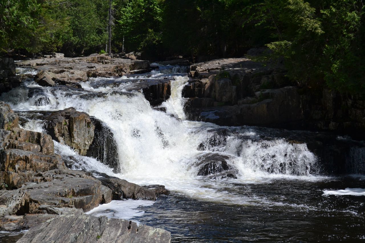 highest in the state. These lower-level cascades form a gorge where the river begins to intensify in flow power. Several strong plunges have molded the