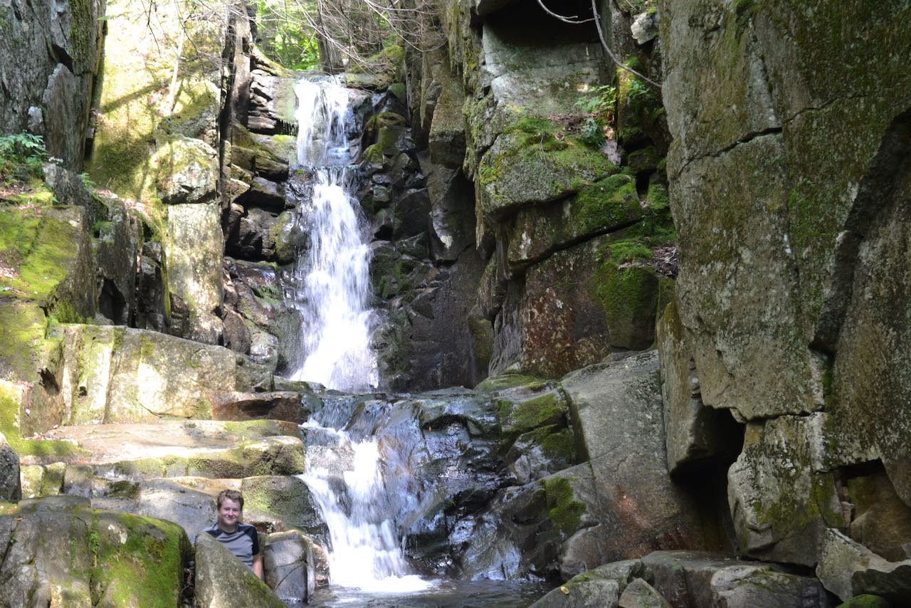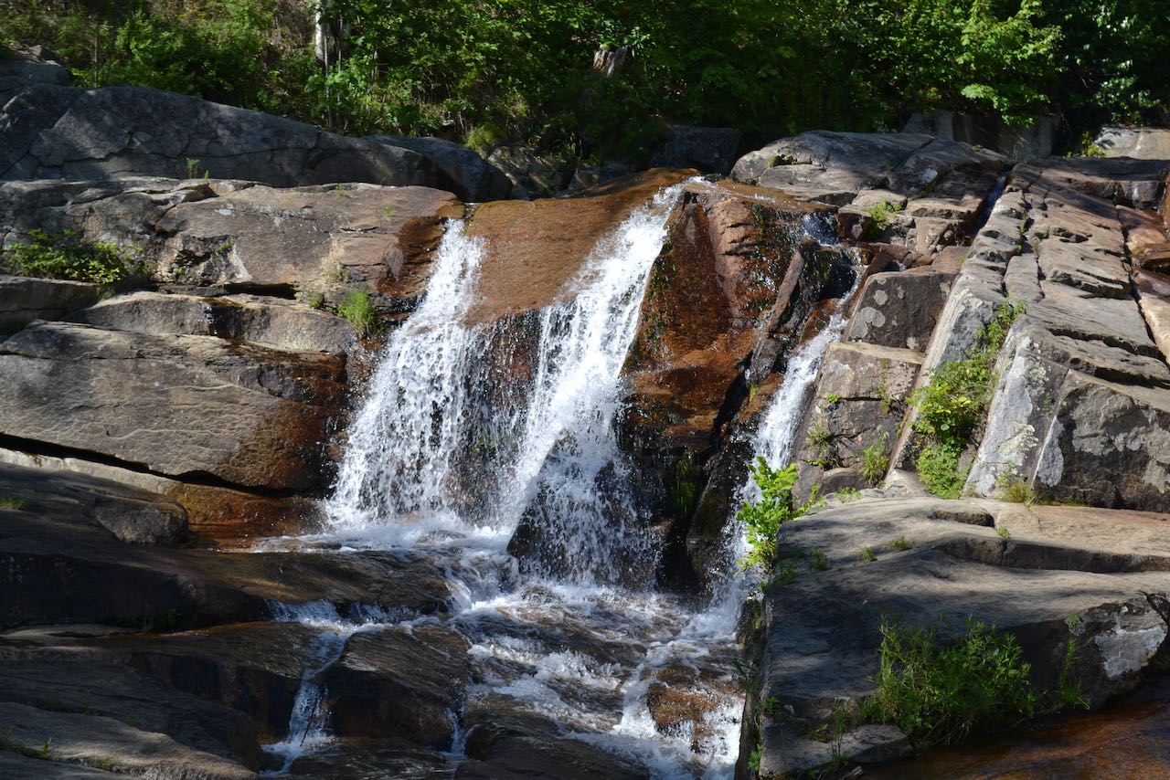 Arethusa. Ripley. Avalanche. Sabbaday. Waterfall enthusiasts know these as some of the big names in our state. Most of New Hampshire's grandest wateralls require just a modest effort to view and enjoy. Plenty, though, are favorably positioned to attract attention right on the side of the road. The popular White Mountains driving tour, which involves driving the parkway through Franconia Notch, Rt. 3 into Twin Mountain, 302 down through Crawford Notch into Conway, and back to Lincoln on the Kancamagus Highway, introduces tourists to several of the most prominent and easy-to-visit ones. If you're a dedicated waterfall hunter, you'll make no distinction between a cascade on the side of the road and a deep-woods cataract where the price of admission is a nine-mile slog into the wilderness (Thirteen Falls, anyone?). The magnificence of the natural forces and the photogenic opportunity are what you're after. And there are also those who would be interested in taking in the awe-inspiring scenery of kinetic water by opening their car door and could do without the hike. So in the interest of completeness, you will find this to be a comprehensive guide to the waterfalls of New Hampshire that you can drive to. Some are famous tourist attractions, and some are small-town secrets, but all are worth a visit for their natural beauty. They're listed in alphabetical order here. For more waterfalls with ease of access, try searching our library of hikes for waterfall hikes of beginner difficulty. This list covers waterfalls you can view with very little or no walking, but some of the beginner waterfall hikes are not much more difficult!