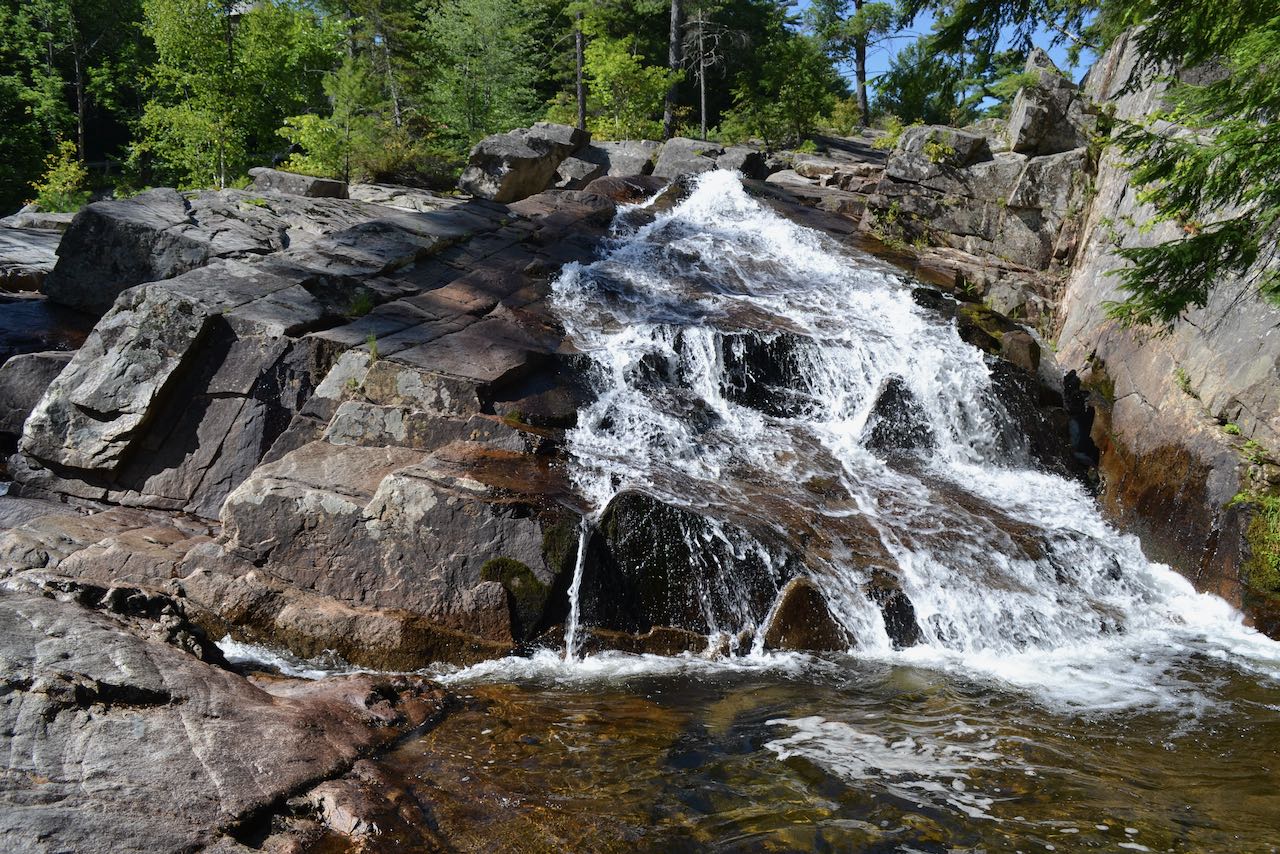 abound. As you travel further downstream, eye-catching blocky shapes in the bedrock take over and form larger and more interesting waterfalls. There are