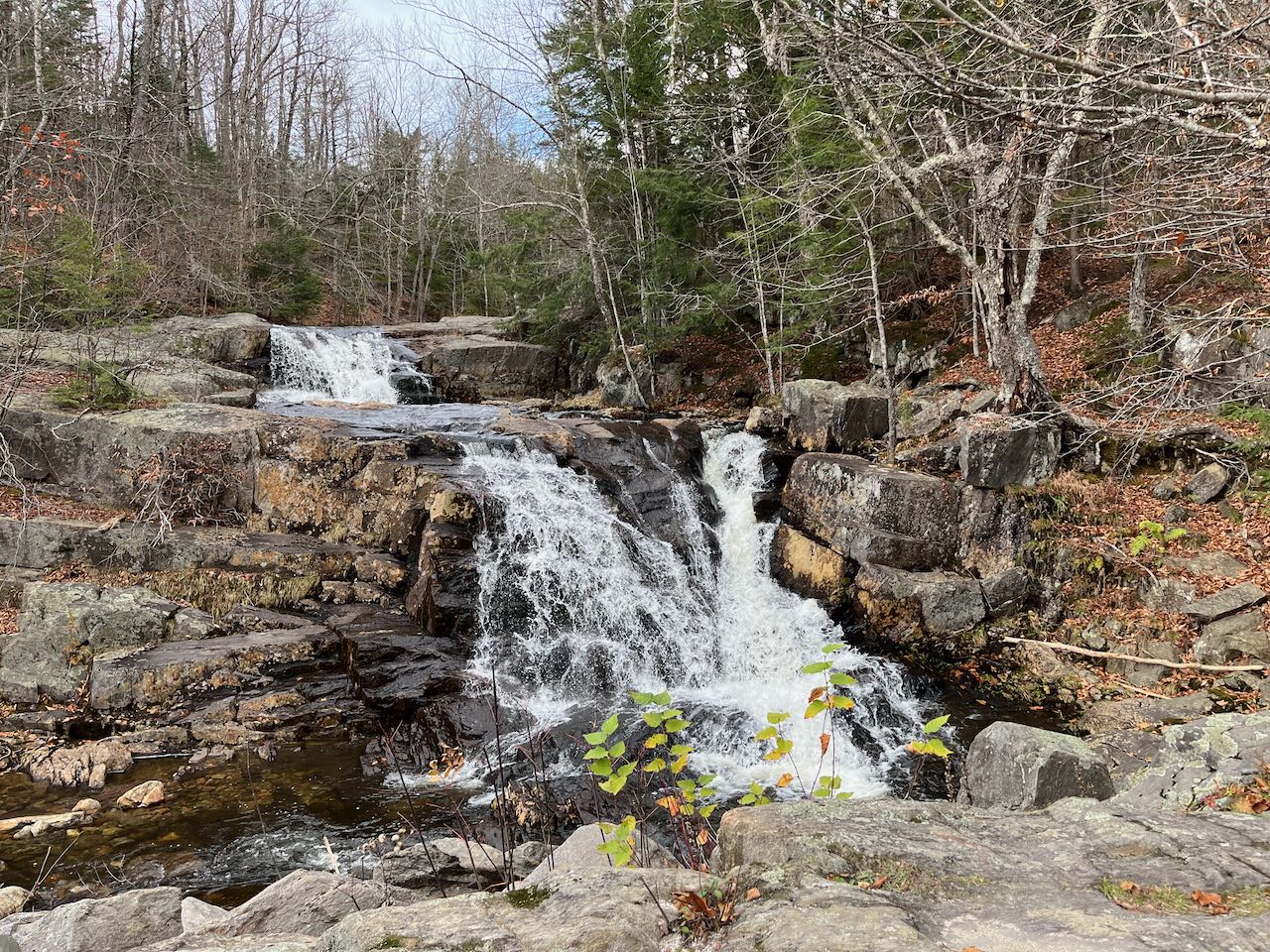 bridge over Brown Brook, where you'll see the waterfall. If visiting during the winter season, you can approach from the south via Stinson Lake Road from